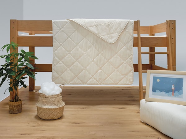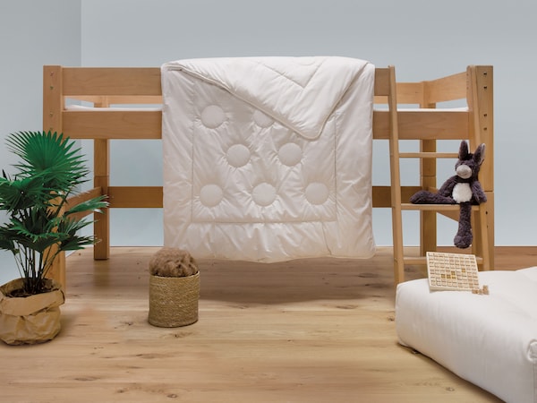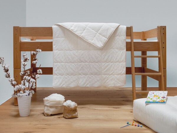 U kunt voor baby's, peuters en kleuter beter kiezen voor natuurvezels zoals kameelhaar of scheerwol. Plantaardige vezels zoals lyocell/tencel, biologisch katoen uit gecontroleerde biologische teelt of hennep zijn goede, wasbare alternatieven voor kinderen van iedere leeftijd. Als uw kleuter het snel koud heeft, is ons donzen kinderdekbed een goede keuze. Synthetisch weefsel is uit den boze voor een babybed.