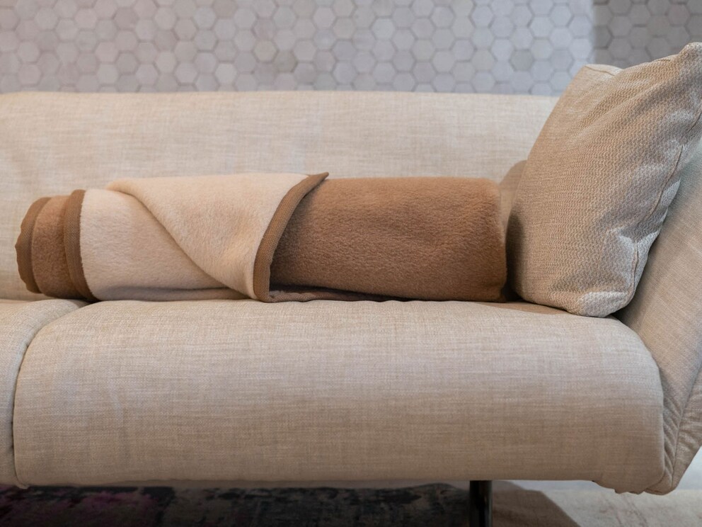 De deken van natuurlijk haar "Rimara" geeft u met zeer fijn alpaca edelhaar aangename warmte en een extreem hoge mate aan soepelheid. Dat komt, omdat deze lamasoort veel voorkomt in Zuid-Amerika in de Andes en zodoende thuis is op hoogtes tot 4000 meter onder extreme weersomstandigheden. De alpacawol voor onze woondekens is afkomstig van kleine boerderijen en coöperaties in het Peruaanse hoogland. De dieren leven daar vrij en worden alleen 's nachts gehouden binnen traditionele stenen omheiningen om ze te beschermen tegen poema's. De alpaca's worden daar regelmatig geschoren. De subtiele, klassieke naturelcombinatie in "crème/camel" met edele bies met structuur voegt zich harmonieus in uw woonconcept.