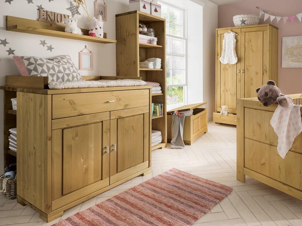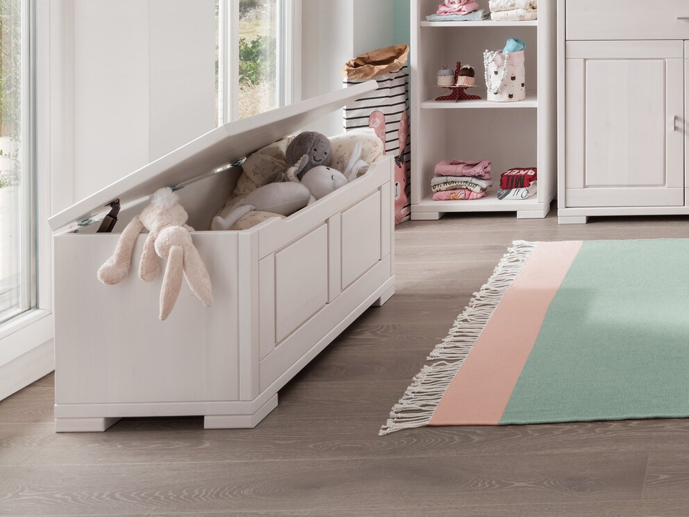 De royale verzonken greep voorkomt dat de vingers in de stress van het opruimen verstrikt raken. De dekselkist "Piccolino" is verkrijgbaar in 2 breedtematen en is niet alleen praktisch in de kinderkamer. Het is ook de perfecte plaats voor een deken of beddengoed voor het logeerbed. De gezellige grenenhouten commode met moderne, onopgesmukte cassettezijkanten is verkrijgbaar in een mooie natureltint van loog/geolied, in een fris wit glazuur of geheel onbehandeld.