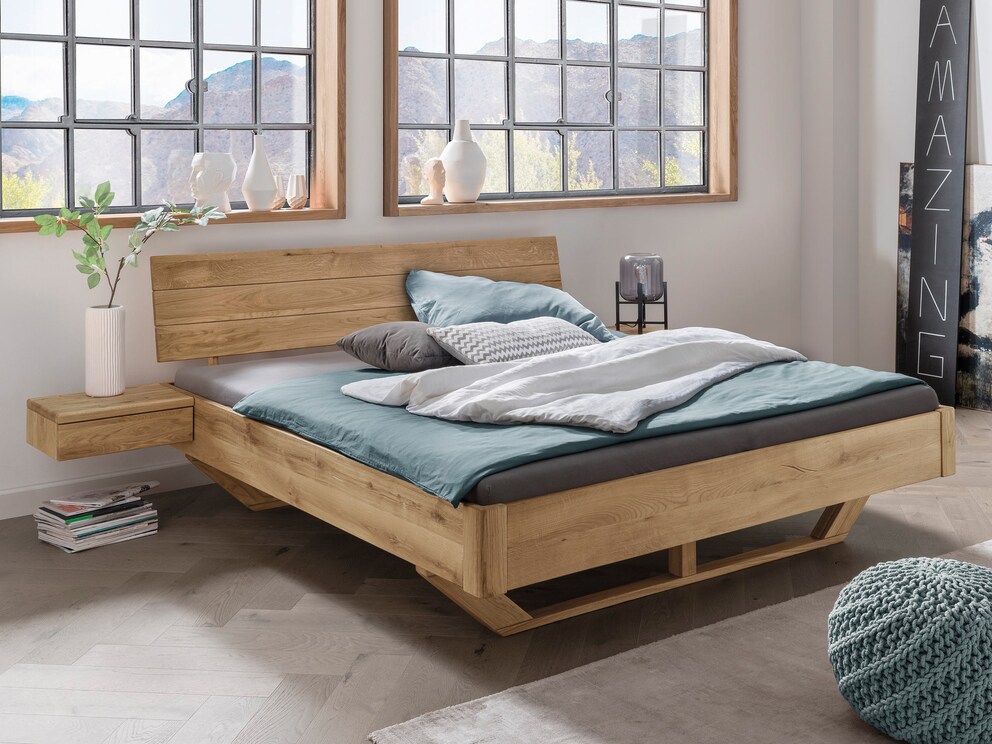 Het Novito zwevende bed in fijn wildeiken laat je slaapkamer stralen