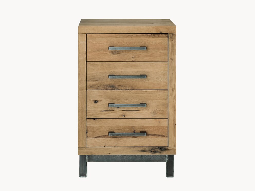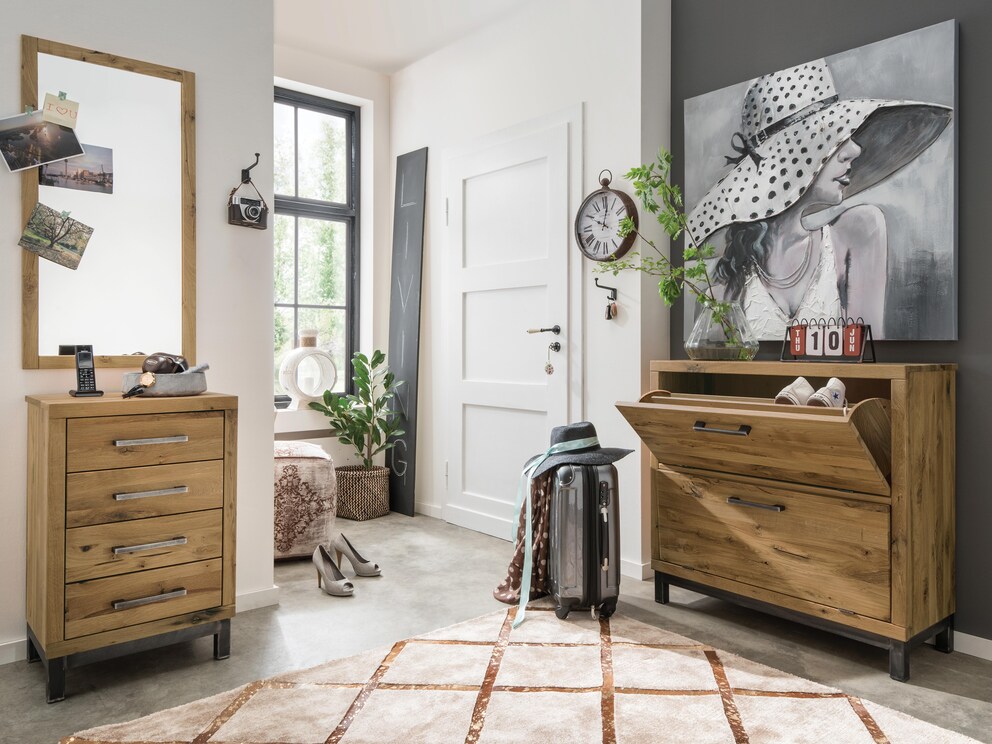 "Locana" in moderne industriële stijl is een schoolvoorbeeld van de trendy vintage-look. De intense houtstructuur van het edele kernbeuken of wildeiken wordt op fascinerende wijze benadrukt door vakkundig uitgewerkte groeischeuren. In combinatie met de opvallende elementen van gezwart metaal ontstaat een meubelprogramma van topklasse.