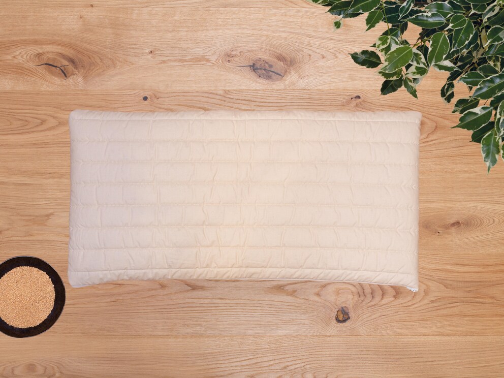 Het pittenkussen met biologische gierstschillen past zich perfect aan uw hoofd en nek aan