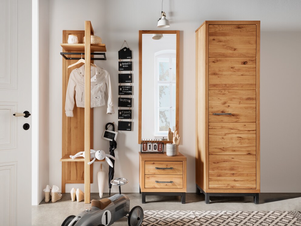 De plankenkast “Locana” is gemaakt van massief beukenhout of wild eikenhout. De uitgesneden groeischeuren benadrukken de intense houtstructuur en maken elke plankenkast tot een fascinerend unicum. Maar de plankenkast biedt nog meer unieke kenmerken.