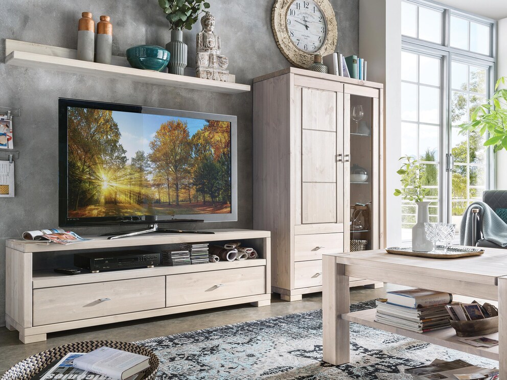 De deuren en lades gaan open aan gevormde metalen handgrepen, die een spannend metallic contrast vormen met het geloogde/geoliede oppervlak. Ze vormen ook een stijlvolle eenheid met het witgeglazuurde grenen hout. De laden van de highboards zijn voorzien van een functionele full-extension pull-out, die u onbeperkte toegang tot de inhoud ervan geeft.