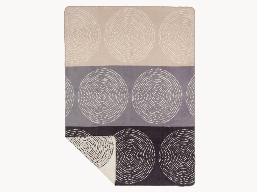 De cirkelmotieven ronden uw bank helemaal af. Deze driekleurige behaaglijk zachte deken van 100 % biologisch katoen zorgt met het mooie motief voor prettige momenten tijdens het lezen of televisiekijken. Omzoomd met een attractieve, op kleur afgestemde zoom met sierstiksel. De pluche deken van GOTS-gecertificeerd katoen is verkrijgbaar in 2 uitgelezen kleurencombinaties in doubleface-look.
