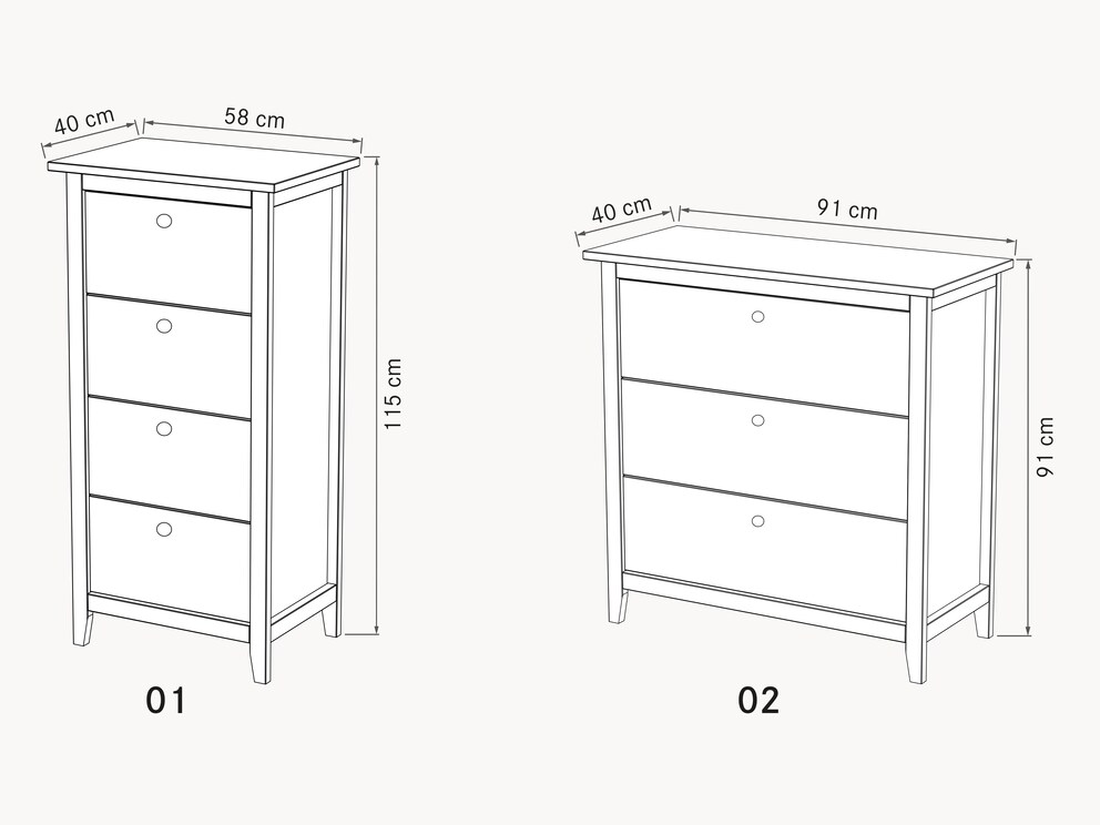 Filigraan, schuine pootjes en de zijpanelen met trendy omlijsting geven dit meubel een vrolijke lichtheid. Wilt u het nog frisser en nog moderner, dan zal de ladekast met witte afwerking zeker uw favoriet zijn. De decoratieve bronzen knopgrepen ronden het aantrekkelijke totaalbeeld perfect af. Dit juweeltje is verkrijgbaar met 3 of 4 laden.