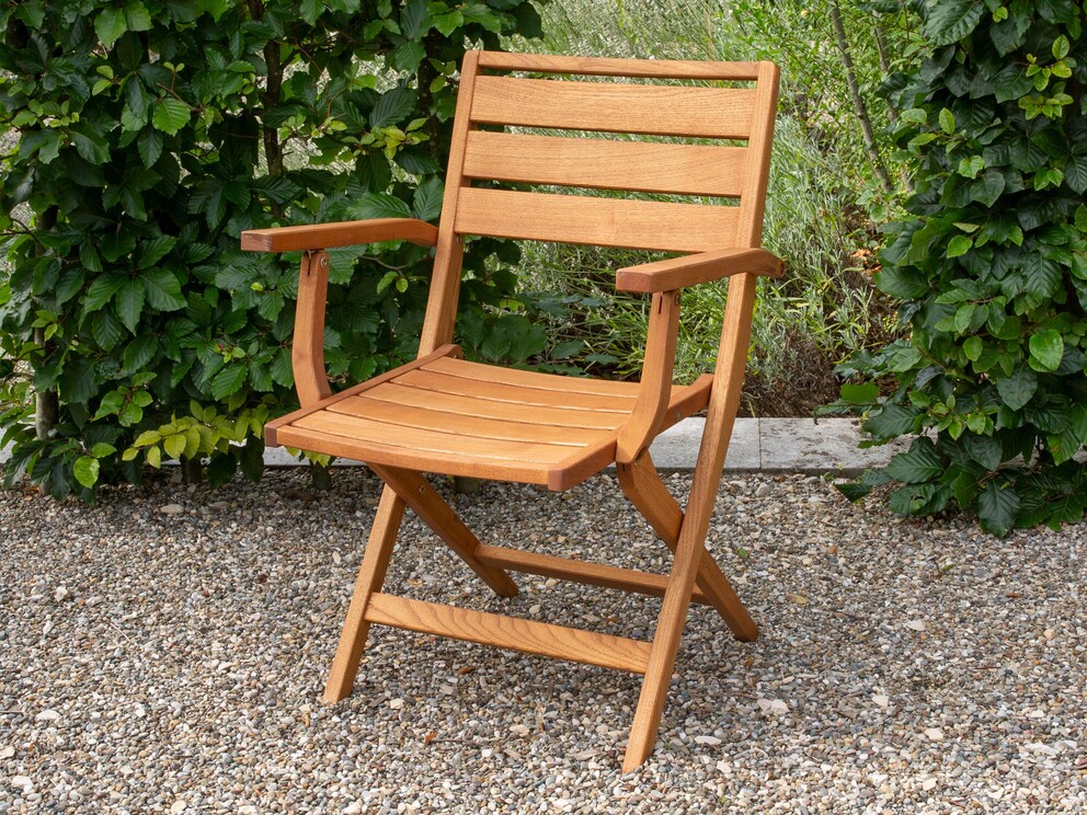 Praktische klapstoel met armleuning van edel massief hout