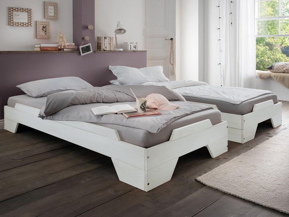 Het stapelbed is verkrijgbaar met een geolied oppervlak in een mooie natuurlijke tint of met een moderne witte lakafwerking. Als u "Scalo" niet alleen als gewoon eenpersoonsbed wilt gebruiken, adviseren wij de 2-delige set met prijsvoordeel. Laat u inspireren door deze bijzondere bedoplossing!