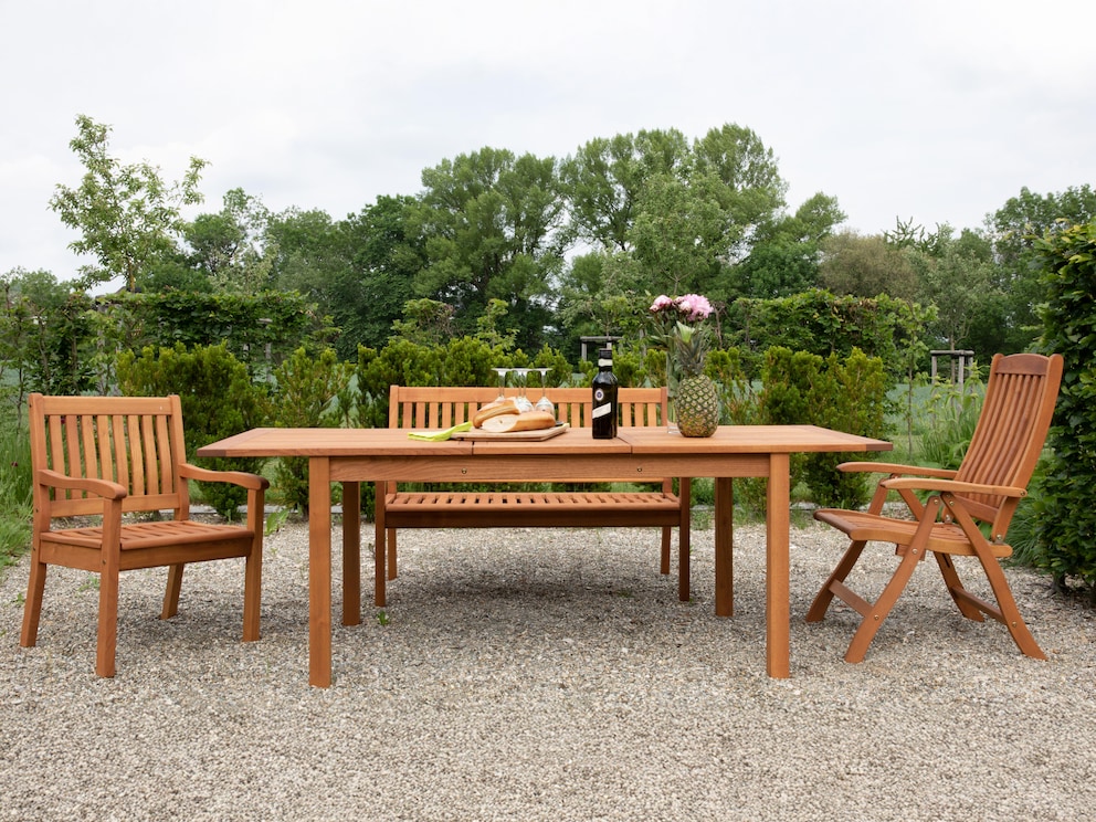 De tuinbank is niet alleen een lust voor het oog in combinatie met andere tuinmeubelen uit het tuinmeubelserie "Celano". Het subtiele robinia-hout past perfect bij reeds aanwezige tuinmeubelen en komt ook als los meubelstuk - bijvoorbeeld naast de voordeur geplaatst - uitstekend tot zijn recht. Geniet van uw tuinbank "Celano" tijdens een gezellig praatje met de buren, bij een spannend boek of gewoon zomaar!