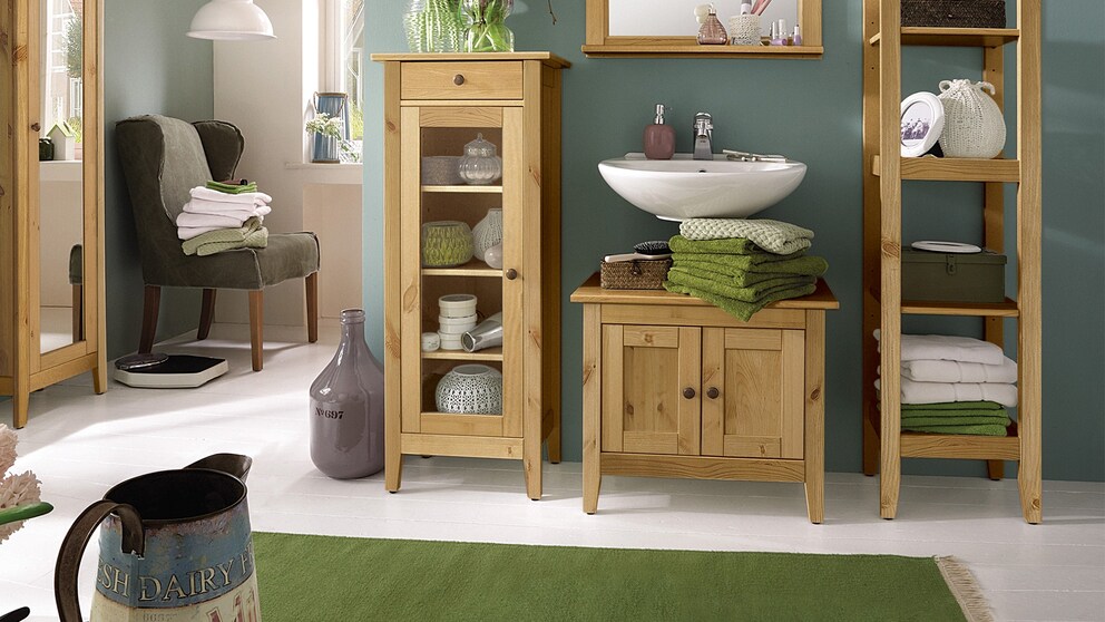 Nu ontdekkenWastafelmeubel Nitida in geloogde/geoliede afwerking met mooi gevormde Shaker poten
