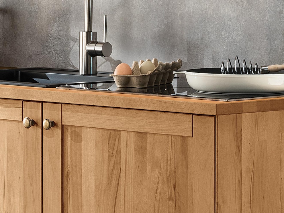 Dit werkblad voor uw "Mediterano" keuken is verkrijgbaar in vijf geraffineerde breedtes. Kies het blad in levend beuken kernhout of massief eiken dat bij uw keukenmeubelen past. Verander uw keuken in uw eigen individuele en praktische activiteitensfeer en verleid familie, vrienden en kennissen met culinaire hoogstandjes.