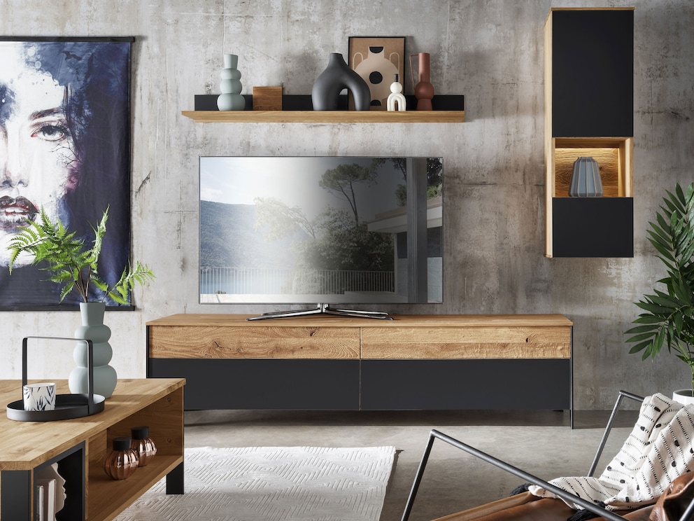Modern met stedelijke flair - Fira woonwand in massief wild eiken, hier variant 01