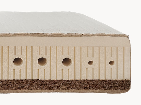 Onze natuurlatexmatrassen zijn gemaakt van 100% natuurrubber en overtuigen door hun puntelasticiteit en oppervlakte-elasticiteit. In de conventionele handel vindt u vaak latexmatrassen van 100% synthetisch latex of matrassen met maximaal 30% natuurrubber.